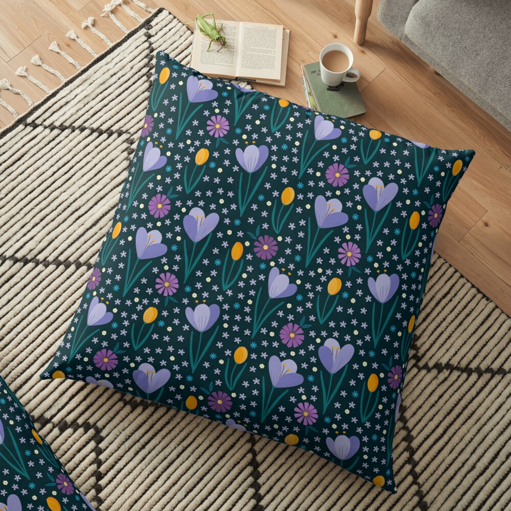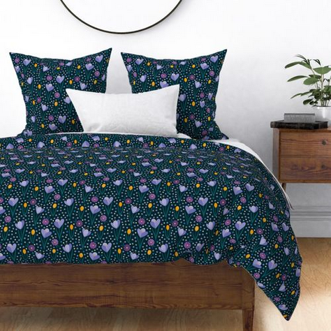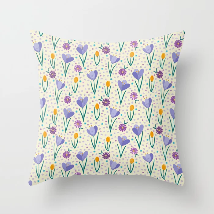 A collection of floral designs and polka dots available on cushions, throw blankets and bedding at Redbubble, Society6 and Spoonflower.